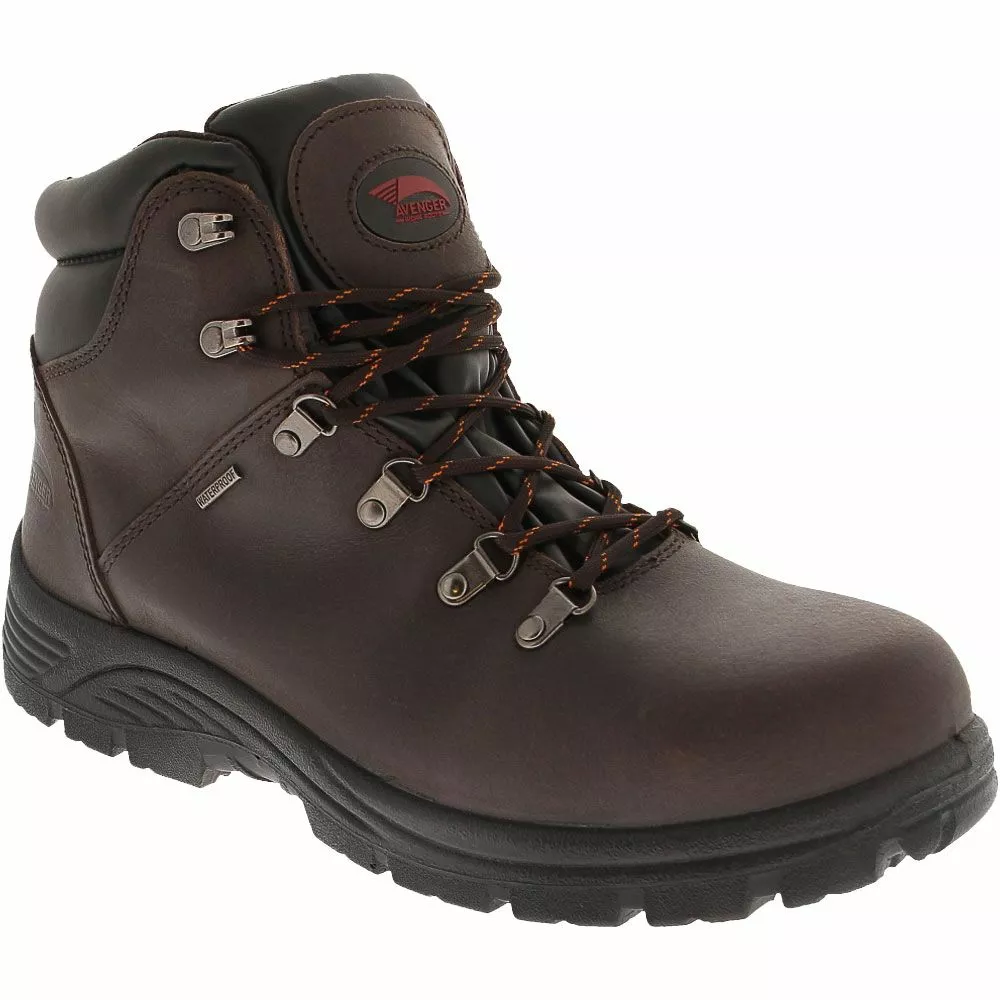 Avenger Safety Footwear Mens Steel Toe Work Boots. The Avenger 7225 mens steel toe boot offers a waterproof membrane to keep your feet dry in wet conditions. The leather upper provides a stylish look. The steel toe will give this shoe ultimate protection. This steel toe meets the ASTM 2413-11 Impact/Compression and EH ratings. The cushion insole gives this shoe all day comfort.