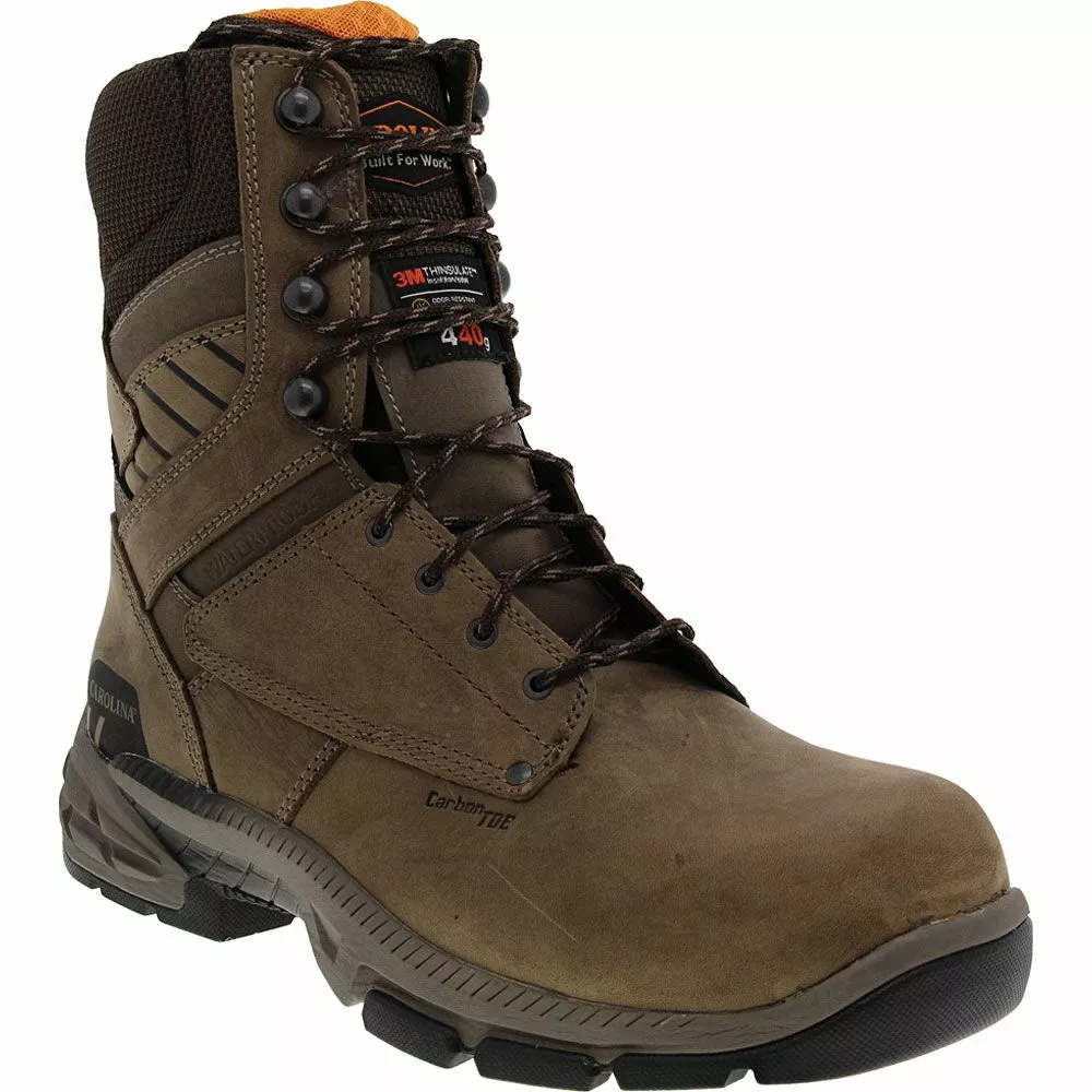 Get the mens composite toe work boots that work as hard as you do. Carolina Duke Safety Toe work boots are built tough. The Cowboy Teak leather upper can survive just about anything. These work boots can take on the worst weather with a waterproof Scubaliner and 440 grams of Thinsulate insulation. Cement construction is meant to last while the dual-density footbed helps you last longer on the job.