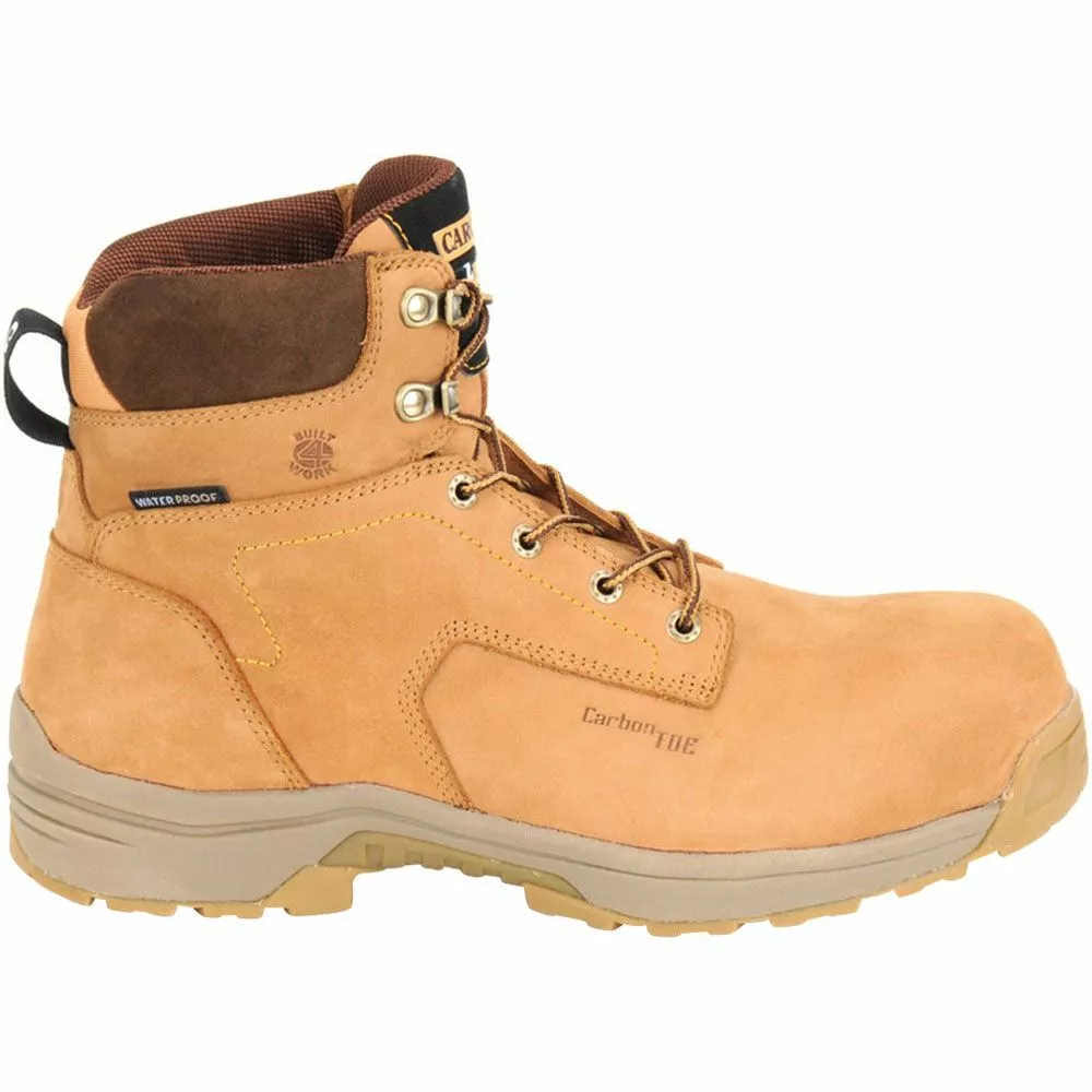 Carolina LT650 Mens Composite Toe Work Boots. For EHA rated mens composite toe work boots that will protect your toes without you having to worry about electrical hazards, purchase the Carolina Lytning Carbon Composite Toe. These boots feature a Wheat Nubuck Leather Upper with ankle support and a carbon composite fiber toe cap. They can handle the rain and snow with a waterproof SCUBALINER, non-metallic shank, and an oil and slip resisting rubber outsole. A removable blow EVA footbed, EVA midsole, and mesh lining will keep your feet comfortable and well supported while you work!