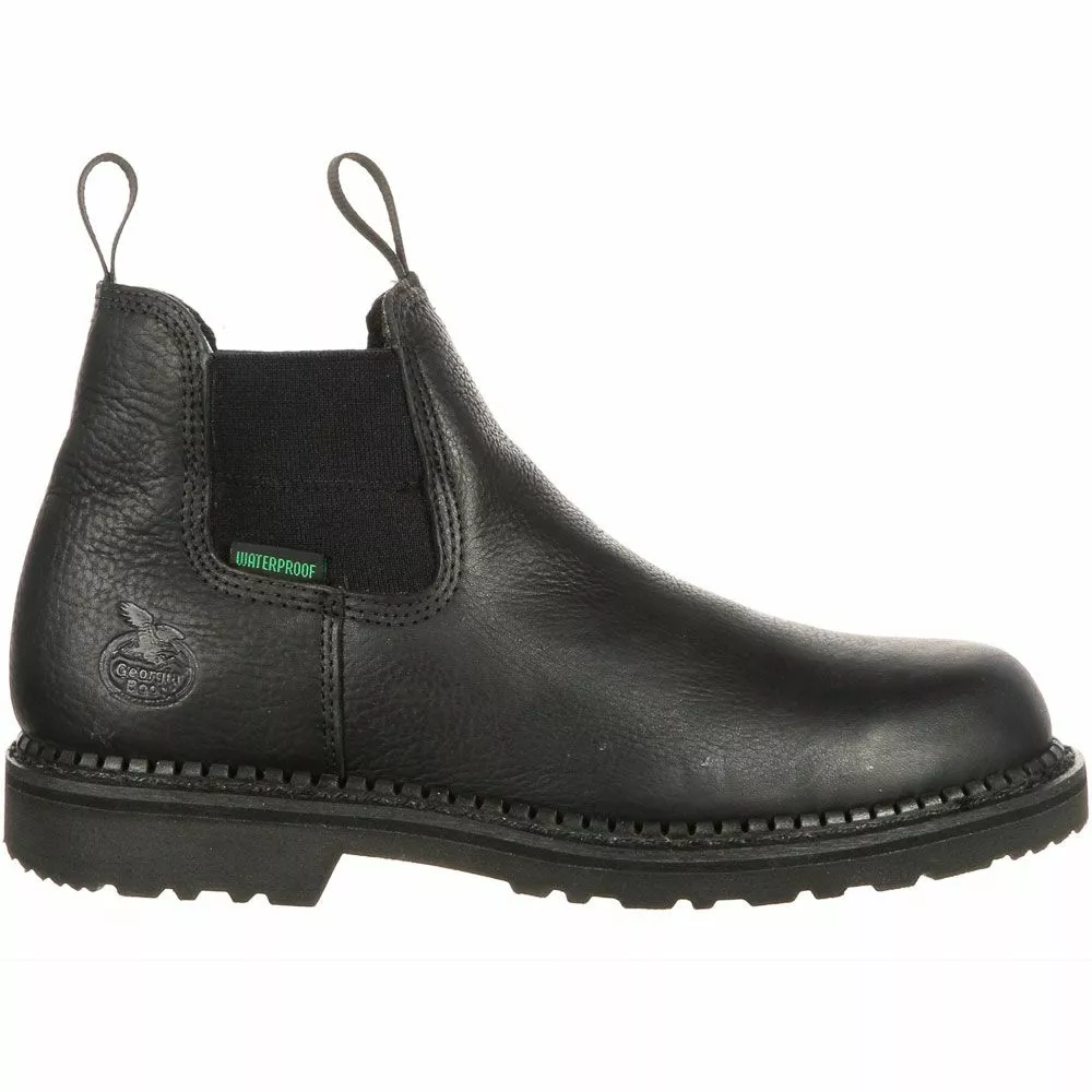 Georgia Boot Gb00084 Mens Non-Safety Toe Work Shoes. These mens non-safety work boots are made from full-grain leather and feature pull loops and twin gores to help you easily take them on and off. Comfort and safety come first with these quality boots thanks to the unique Georgia® Waterproof system and a lasting TDC polyurethane insole. Additional support comes from the EVA midsole with steel shank arch support.