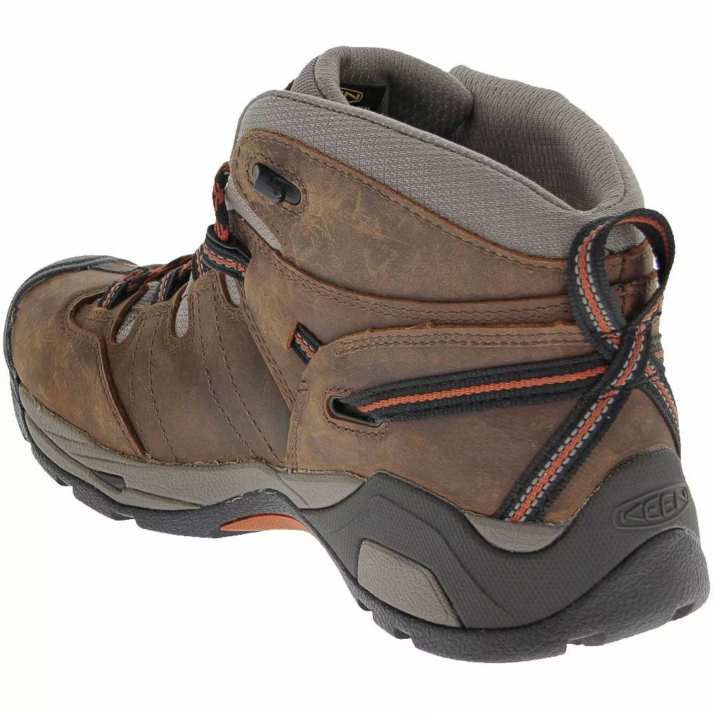 KEEN Utility Detroit Xt Mens Soft Toe Work Boots. These sporty hiking-style mens soft toe work boots are easy on the eye and easy on the feet. The striped laces, reflective webbing and sturdy lug soles feature contrasting black and bright orange. The soles are waterproof, non-marking and oil and slip-resistant for a dependable stride. A padded collar, contoured footbed and moisture-wicking lining add the comfort to keep you going.