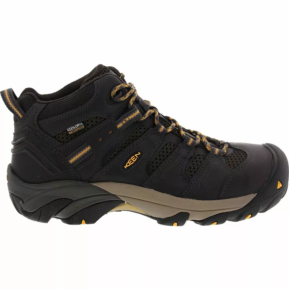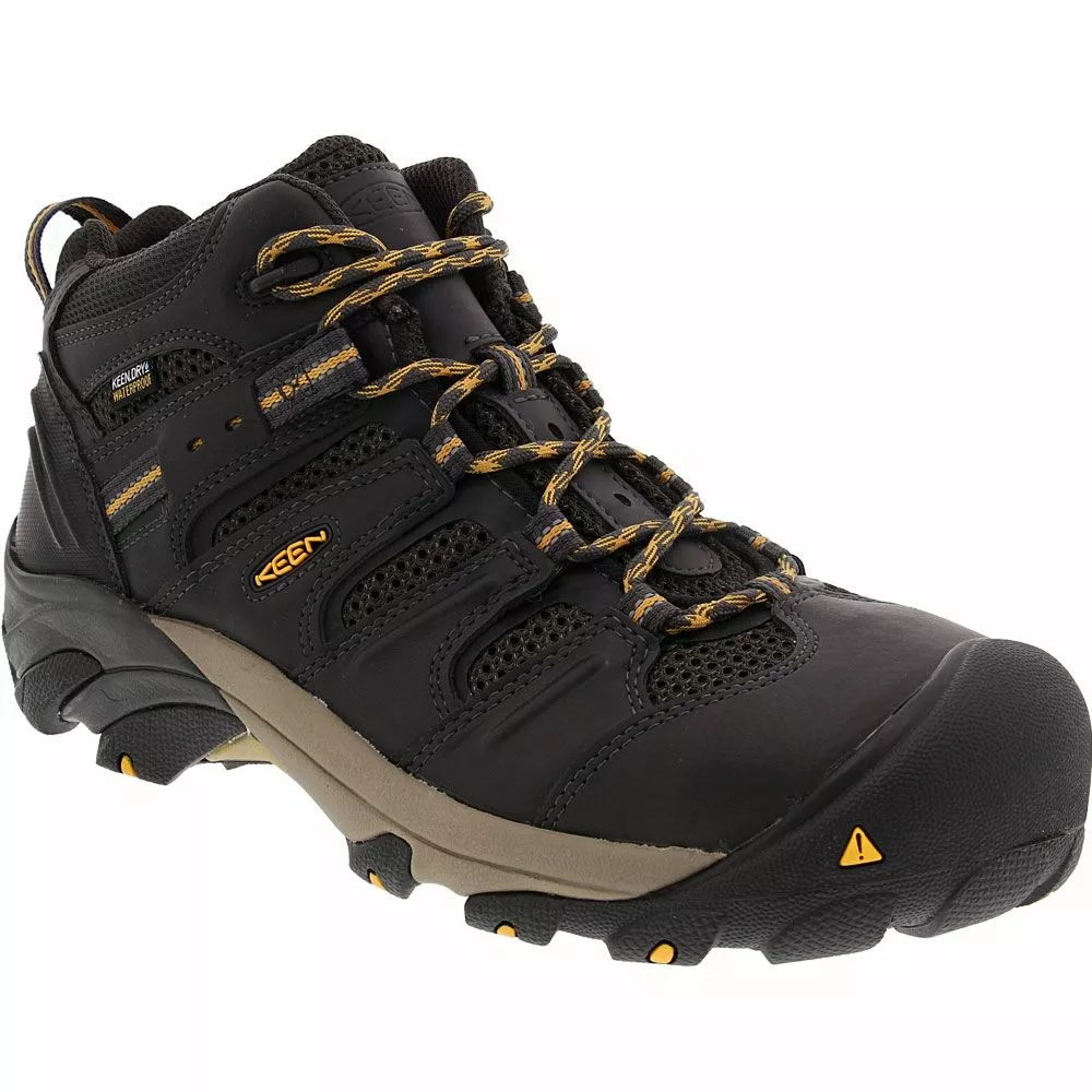 KEEN Utility Lansing Mid Mens Steel Toe Work Boots. KEEN Utility’s toe cap protects more of your foot by shielding the front, sides and top of your toes. The toe box is wider too, giving your feet more room to stretch. The internal KEEN.DRY waterproof membrane and waterproof leather will keeps liquid away from your foot, but air can still circulate freely for maximum comfort. Moisture within the shoe can escape too, keeping you free of sweat and grime.