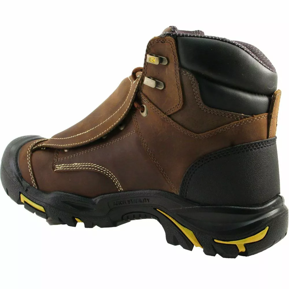 KEEN Utility Men’s 1016166 Mt Vernon Met Guard Steel Toe Work Boot. This burly met guard is American built with imported materials. The KEEN Utility Men’s 1016166 Mt Vernon Met Guard Steel Toe Work Boot also features a waterproof leather upper and is EH rated.