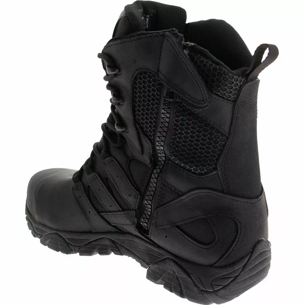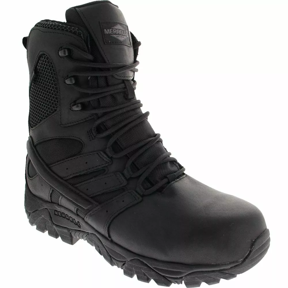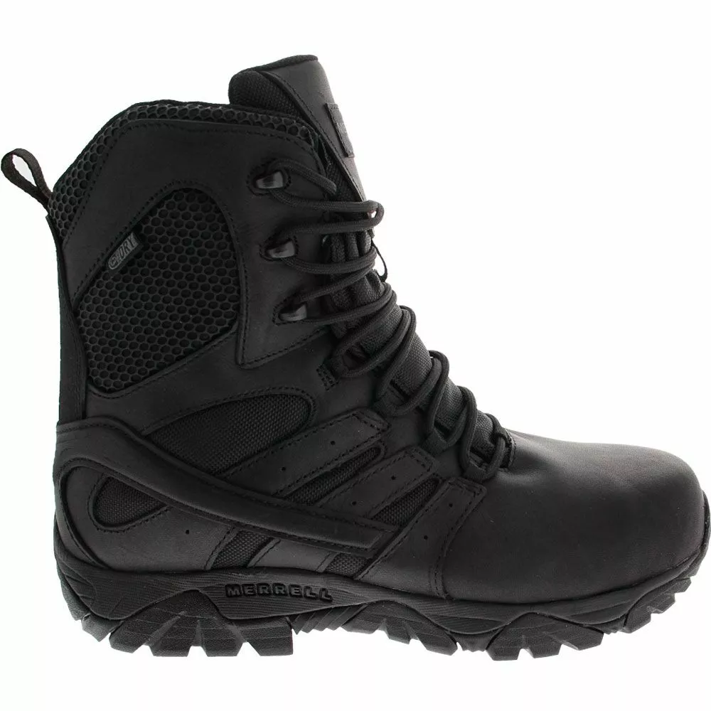 Merrell Work Moab 2 8in Tactical Ct Composite Toe Work Boots – Mens. Tactical operators need footwear of the highest order, and the Waterproof Moab 2 Composite Toe Mens Work Boot meets the criteria. It offers high durability, from the M-Select rubber outsole to the YKK side zipper hardware. Breathable mesh is featured at the lining and upper for comfort, while waterproof Strobel construction maintains dryness for safety and focus around the clock.