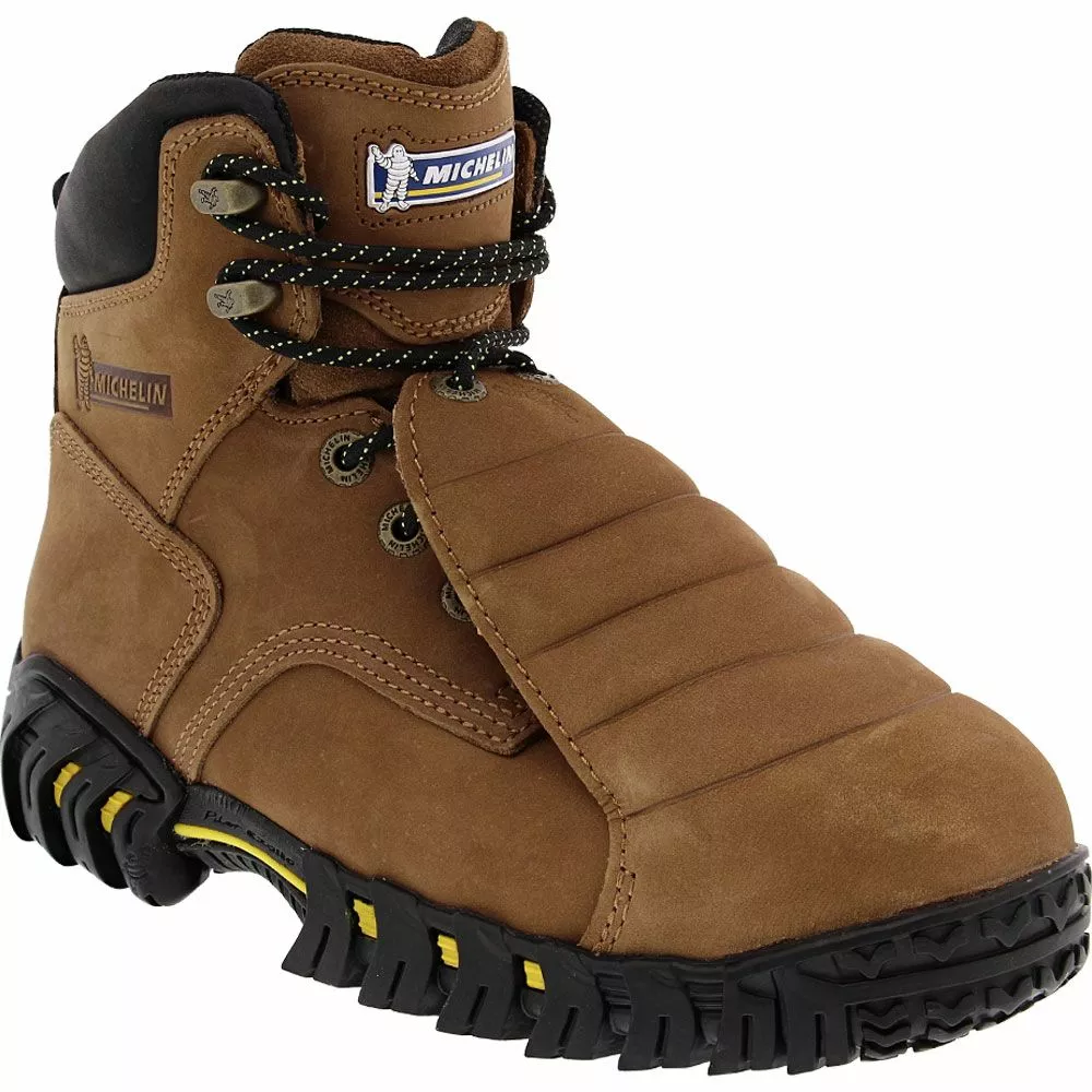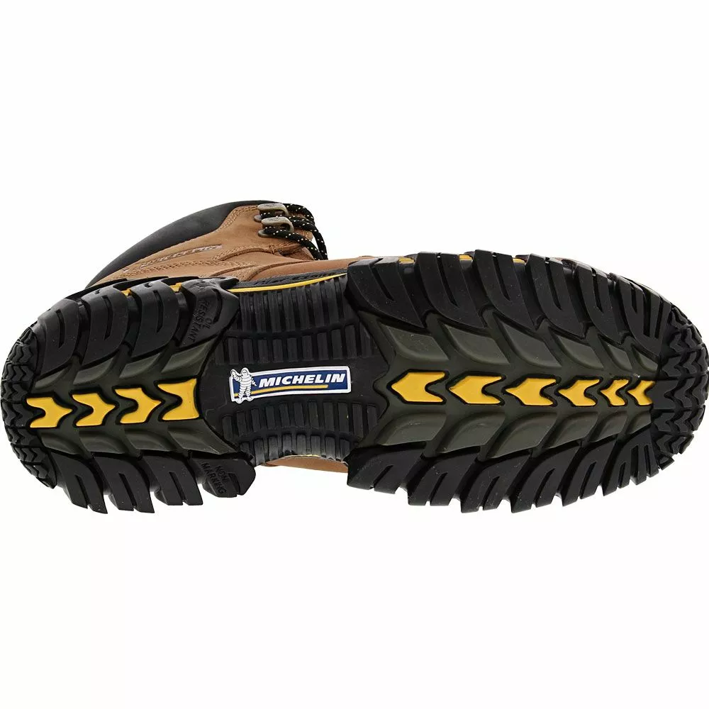 Michelin Sledge Men’s Steel Toe Work Boots. The unlined leather upper is safety equipped with a sturdy steel toe and external metatarsal guards, shielding your feet from imminent workplace disasters. Michelin Orthotic TPU Chassis Polyurethane cushion insole. The shock absorbing midsole on the Michelin Sledge work boot cushions your feet against the ravages of a hard work floor by dissipating the impact of each boot-to-floor step. The Strobel construction attaches the long-wearing rubber outsole with a more natural feeling, supportive last. These soles are Electrical Hazard safe, as well as highly slip, oil, fuel, chemical, and abrasion resistant. ANSI/ASTM-rated class 75 metatarsal guard and steel toes.