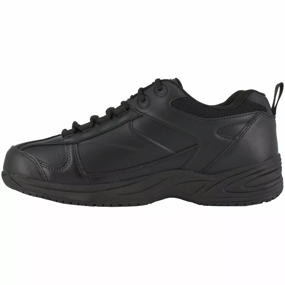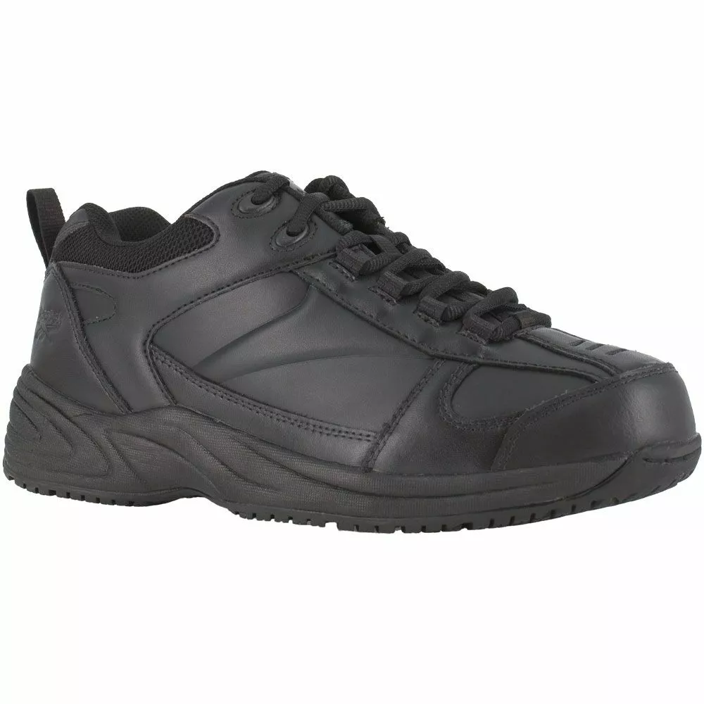Reebok Rb1100 Mens Non-safety Toe Work Shoes. Reebok Works features an easy care leather upper with Taibrelle lining. This soft toe work shoe has a Removable EVA Cushion Insert with an Underside Heel Pad. The outsole consists of Sure Grip Plus Rubber Sole.