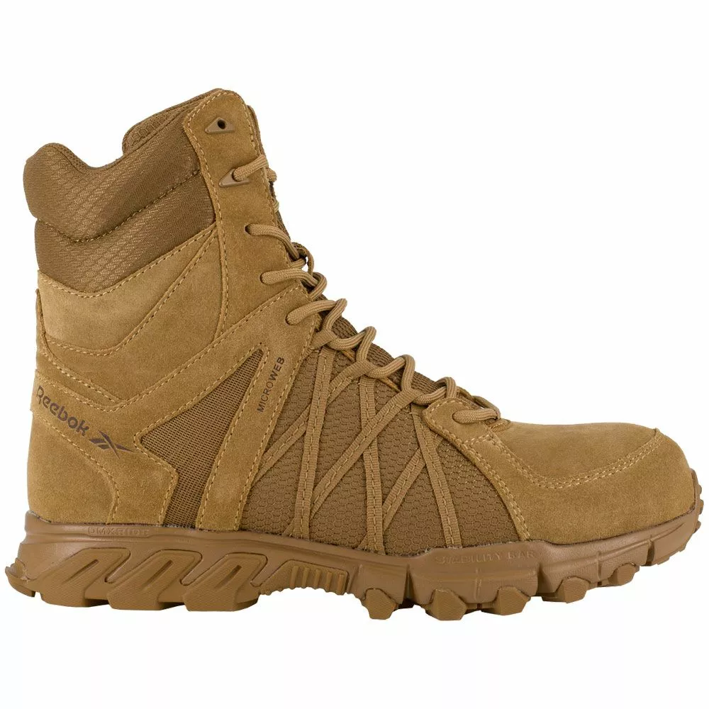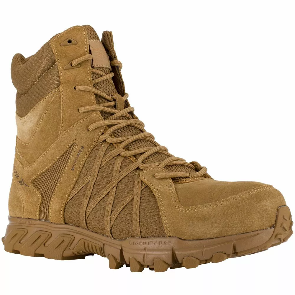 Reebok Work Rb3460 Composite Toe Work Boots – Mens. Optimize your workday when you have a pair of mens composite toe work boots that keep your feet comfortable all day long. Reebok Work makes these Trailgrip Tactical boots with memory foam that molds to your foot and a microweb of lacing for lateral stability. The rubber lugs on the outsole offer outstanding traction.