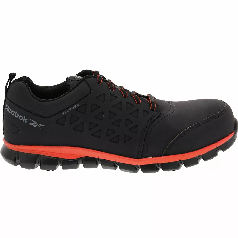 Reebok Work Sublite RB4050 Leather Low Safety Toe Work Shoes – Mens. Enjoy superior on-the-job comfort in Reebok Work’s Sublite Cushion mens safety toe work shoes. The Sublite is a work sneaker with an XTR Brand composite toe cap and a roomy extra-wide toe box. The Sublite’s EXOFUSE water-resistant microfiber upper keeps feet dry during an entire shift. Removable footbeds with MemoryTech Massage 2.0 technology helps prevent foot fatigue. With slip-resistant rubber heel tread and forefoot pads, the Sublite’s outsoles provide essential traction.