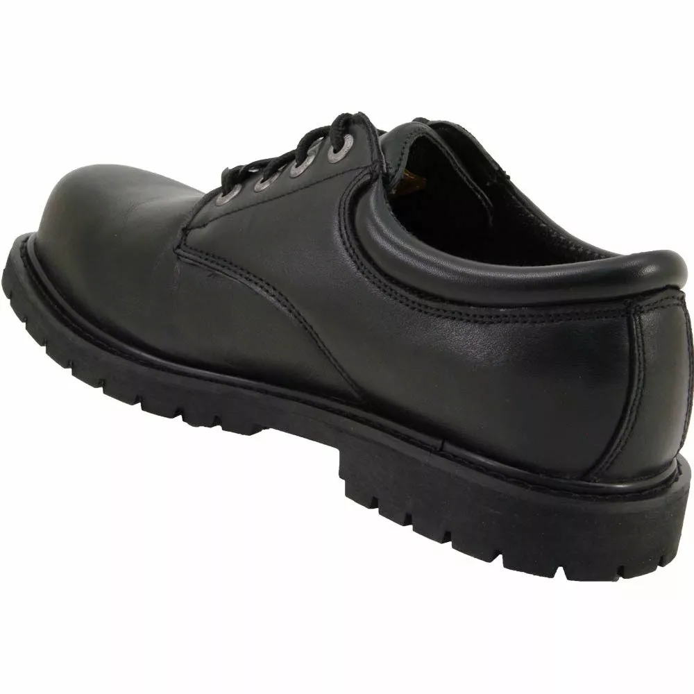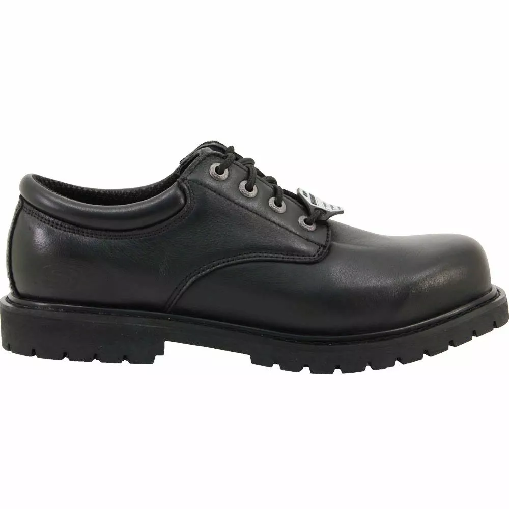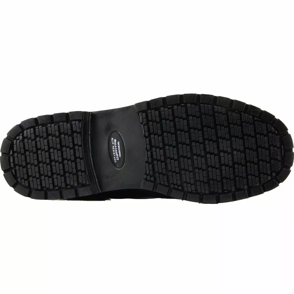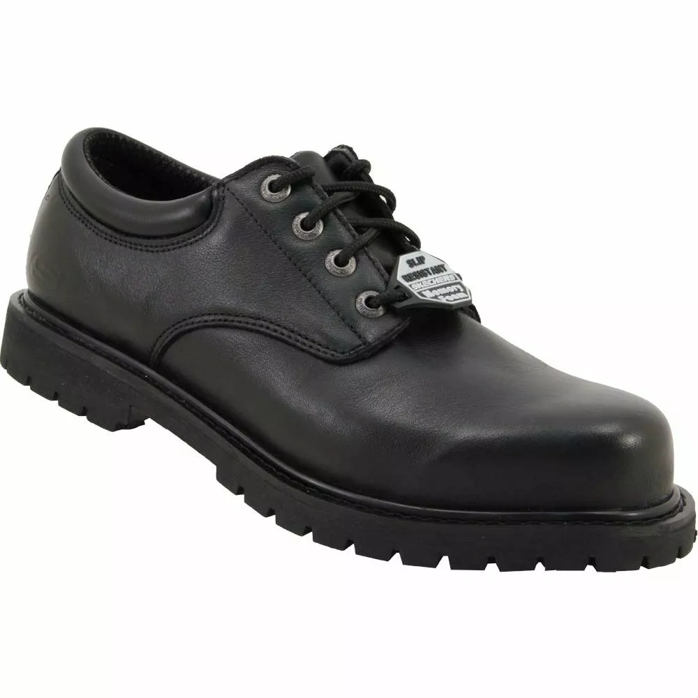Skechers Work Cottonwood-Elks Men’s Work Shoes. The Cottonwood-Elks made by Skechers offers a slip resistant outsole that is ASTM approved and will keep you safe on slick surfaces. The padded collar, padded tongue, and memory foam cushioned insole will keep your feet comfortable and happy. The napa leather upper is strong, flexible and built to last.