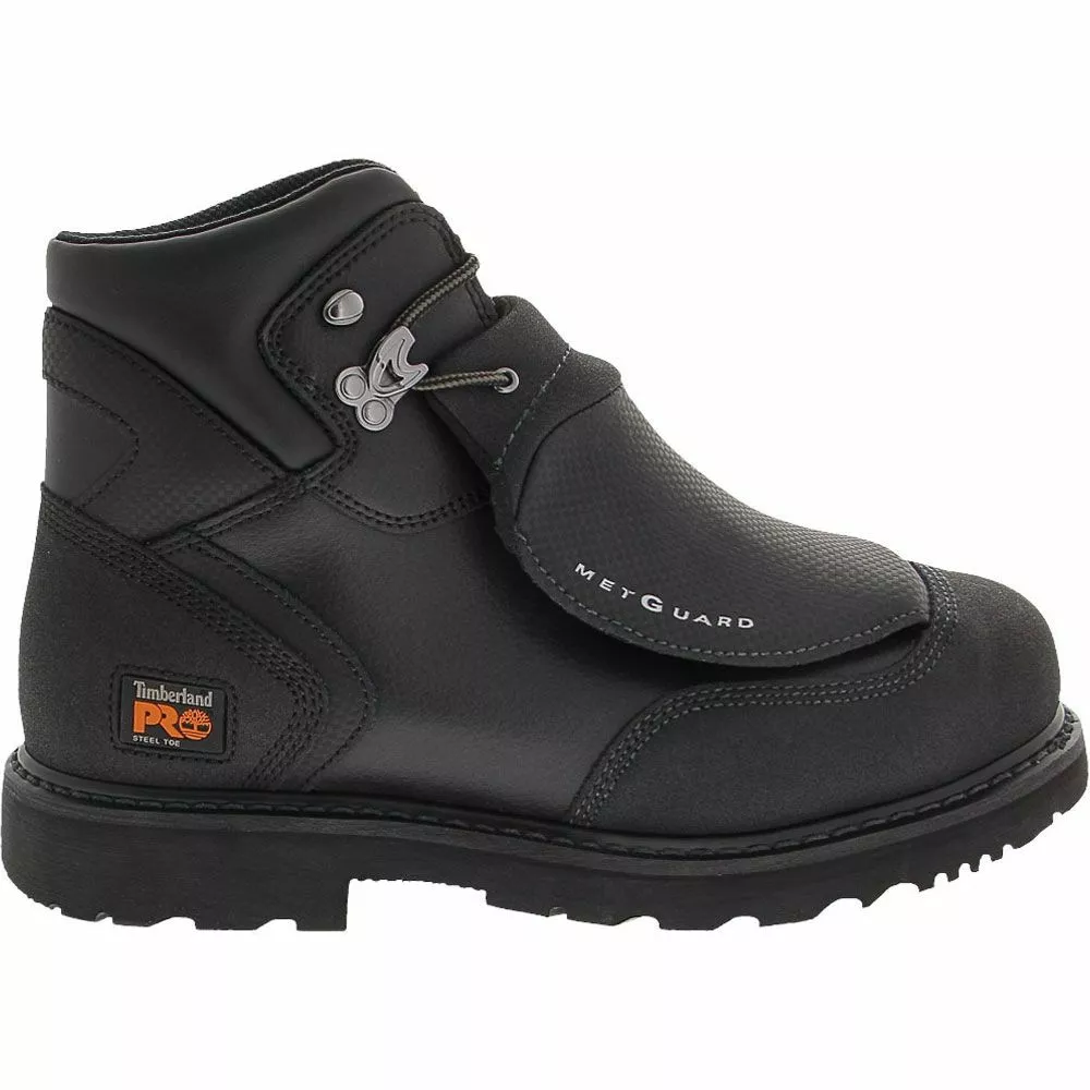 Timberland PRO 40000 Men’s Steel Toe Met Guard Work Boots. The leather upper on the Timberland PRO 40000 is attached to a Goodyear Welt rubber sole with thread made of Nomex flame- and heat-resistant fibers. Closed-cell PU footbed for lightweight cushioning and resistance to compression set. Timberland PRO rubber outsole is both heat- and slip-resistant. The ASTM safety toe and EH classification protects your foot from crushing and shocking consequences.