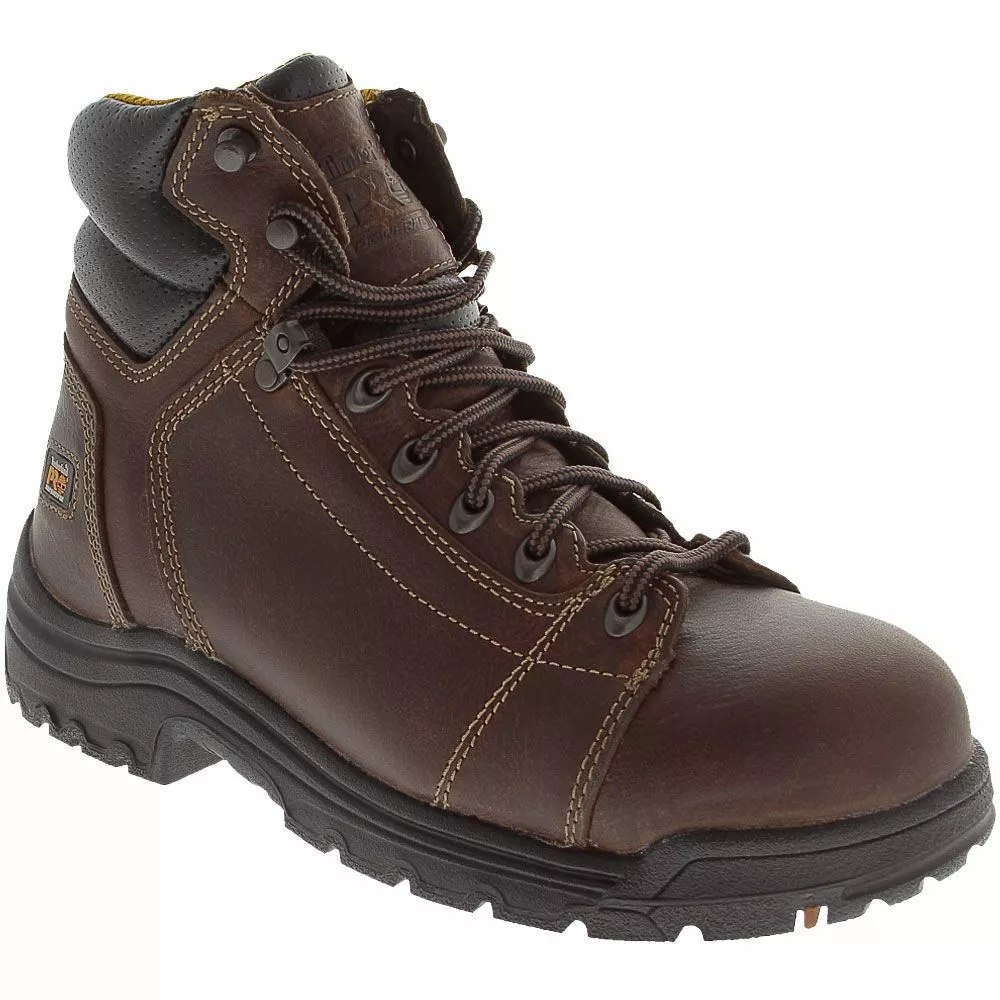 Timberland PRO 50506 Men’s Safety Toe Work Boots. Activate your daily energy drive with the Timberland PRO 50506 work boot. The full-grain leather uppers feature the PowerFit Comfort System with Titan lace-to-toe lacing. A moisture-channeling, spacer mesh, comfort lining with an integral anti-microbial treatment, keeps your feet dry and comfortable, while reducing odor-causing bacteria. The polyurethane midsole with the high-rebound heel inserts provide durable cushioning and energy return. Work free of fear with a safety-toe cap and electrical hazard protection that meets ASTM regulations. The Dual-Density rubber soles are non-marking, oil- and slip-resistant.