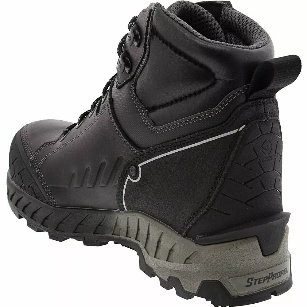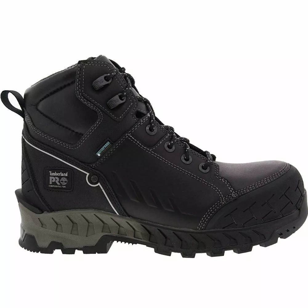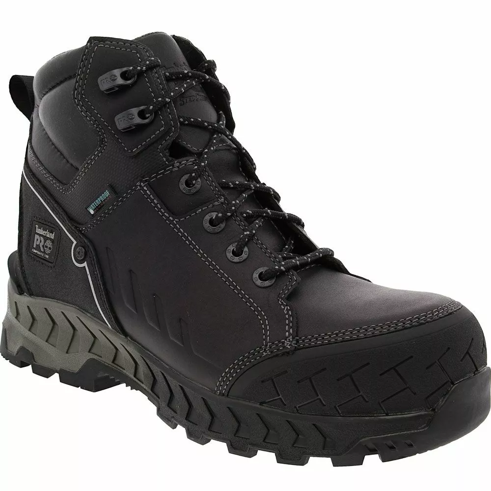 Timberland PRO Summit Composite Toe Work Boots – Mens. These mens composite toe work boots use amazing technology to keep the feet safe and comfortable. The lightweight toe caps, in particular, feature CarbonShield™ Technology to protect the top of the feet. The boots even include ExoSpine™ Technology for increased stability on uneven surfaces. Meanwhile, the waterproof leather repels outside moisture, and the non-marking rubber outsoles are slip-, abrasion-, heat- and oil-resistant.